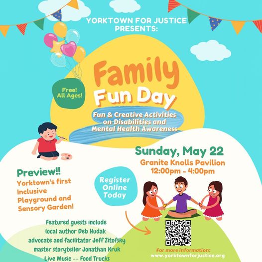 Please join us on Sunday May 22 at Granite Knolls Pavilion for family fun day! All are welcome! We will be raising money to help sponsor a garden planter for Yorktown’s first ever inclusive playground and sensory garden!